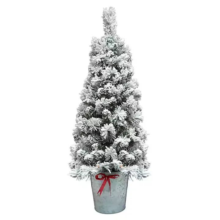 Add a dusting of winter charm to your Christmas decor with this 4 ft. Pre-Lit Flocked Pine Tree in Metal Pot! Its flocked branches will add seasonal style to any space.