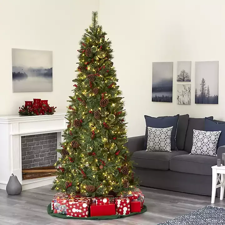 Deep red berries and textured pinecones emerge from our 7.5 ft. Pre-Lit Norway Mixed Pine Christmas Tree. Its festive design is enough to showcase on its own!