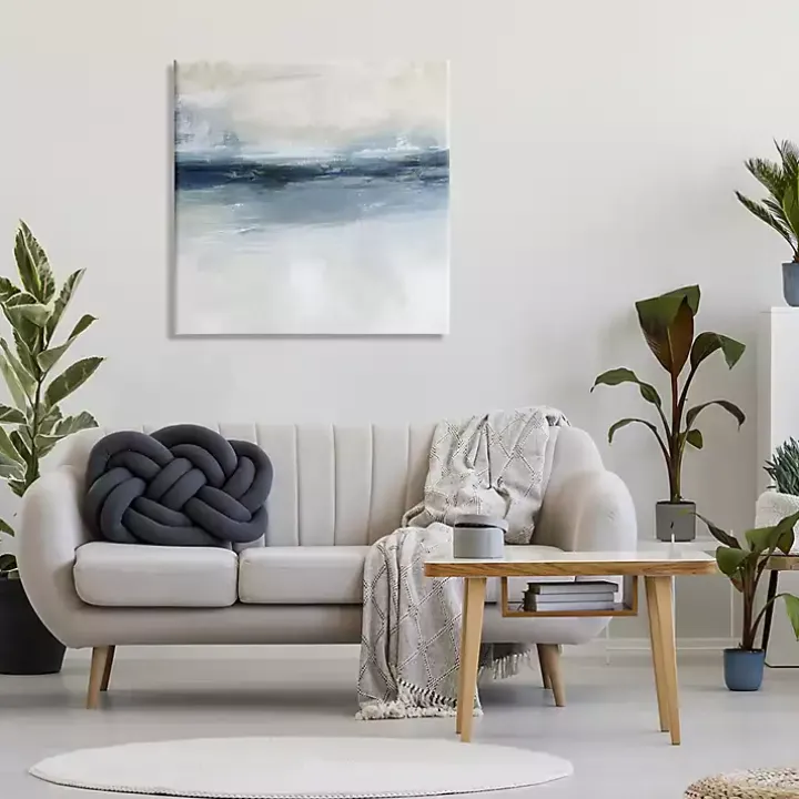 Bring the tranquility of the ocean into your home with this Abstract Nautical Horizon Canvas Print. Its deep blue hues and soft style will add a soothing feeling to any space!