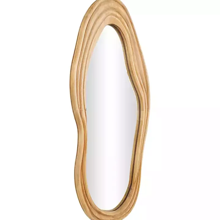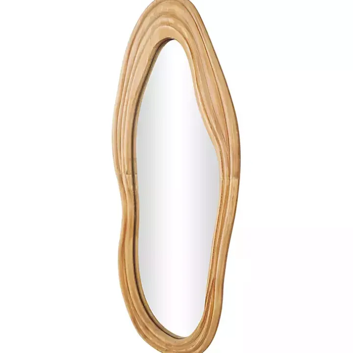 Add personality to your wall decor with this Abstract Wavy Wood Wall Mirror. Its modern, organic shape and textured frame will make your space feel uniquely yours!