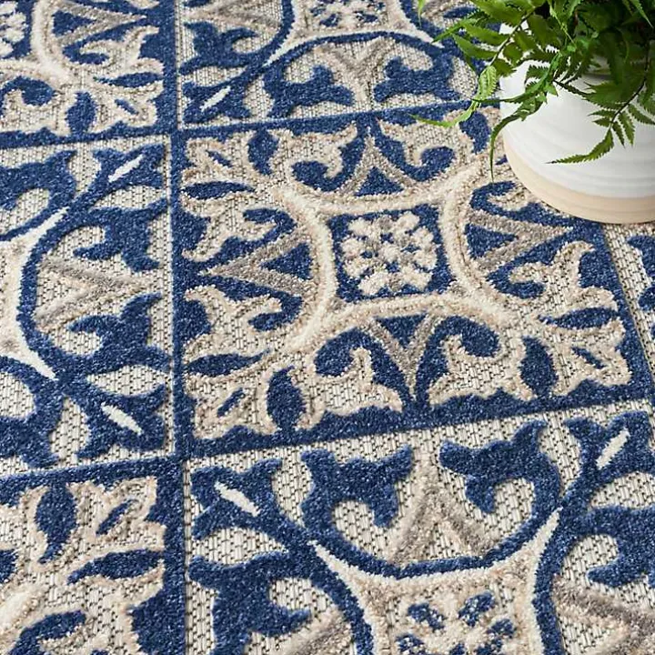 With its ornate tile pattern, this Aloha Blue Geometric Indoor/Outdoor Area Rug will put some personality on your floors. Its subtle texture is perfect for both indoor and outdoor spaces!