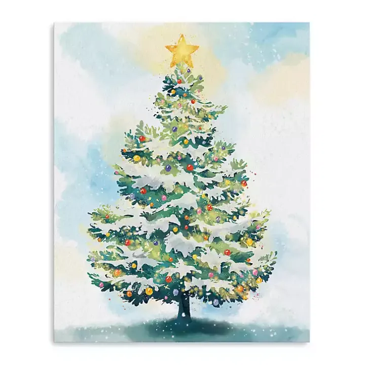 Featuring a cloudy blue sky, soft snowfall, and a shining star, the tree in this Angelic Christmas Tree Canvas Art Print looks like it was sent from above!