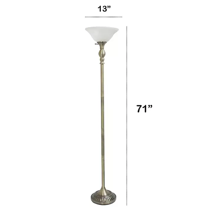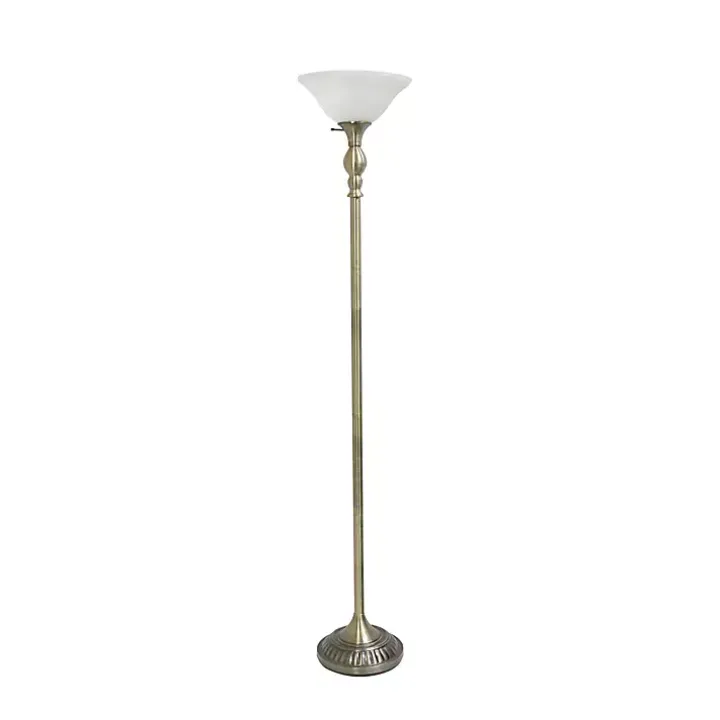 Add a chic, understated touch to your space with this Antique Brass and Marbleized Glass Torchiere. It’s a stylish way to brighten up any room in your home!