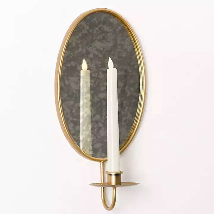 Give any corner a timeless touch with this Antique Gold Mirrored Wall Sconce. Paired with a taper candle, it brings a soft glow and warm atmosphere to your space!