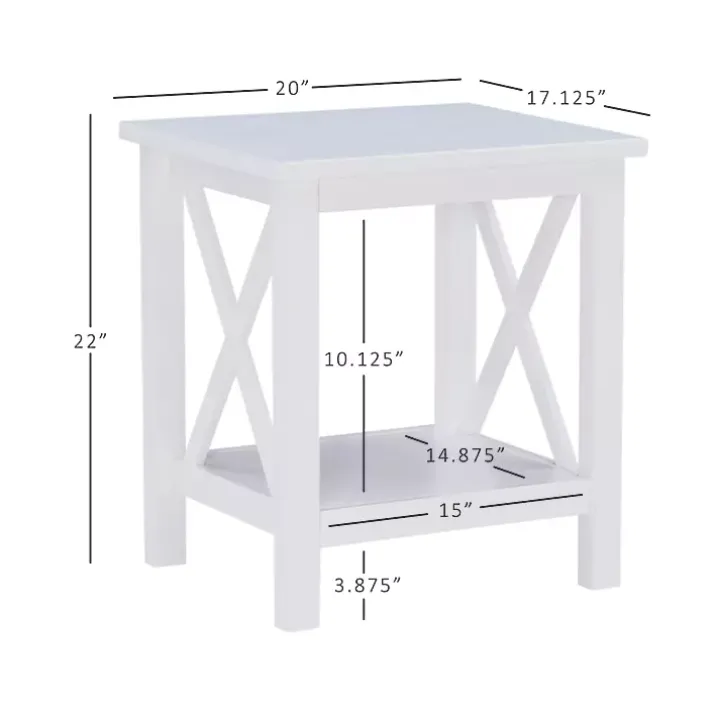 Add an elegant and interesting look to any space with this gorgeous accent table. The Antique White X Side Frame Accent Table creates an eye-catching style you’re sure to love and provides a shelf for additional storage or decoration options.