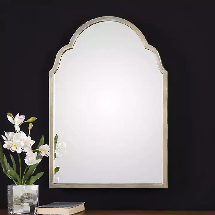 Nothing opens up a room like a large, stylish mirror. The Silver Metal Arched Mirror with distressed finishing will add an elegant look to any modern living space.
