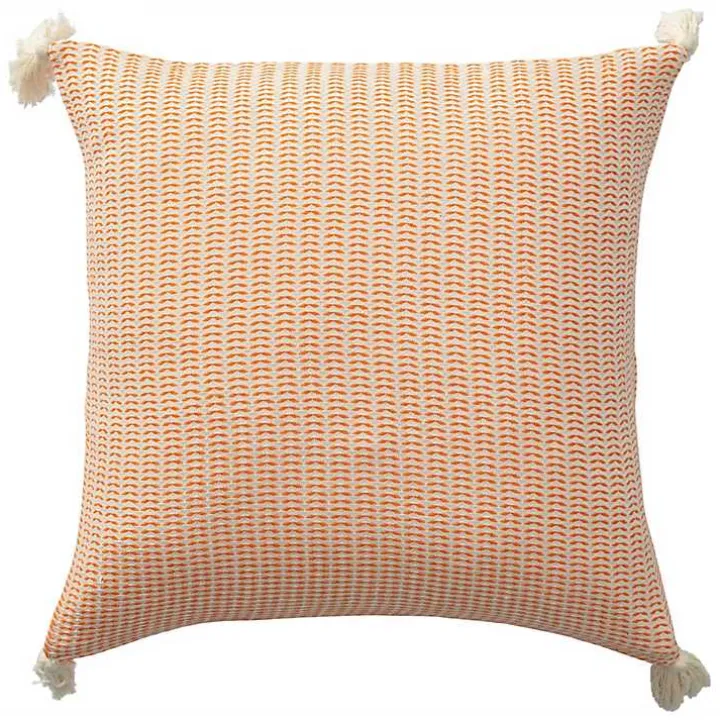 Redefine your sofa or bed with the perfect shade of orange! Featuring a chic woven pattern, our Apricot Trapeze Organic Cotton Throw Pillow is a lovely and comfy choice.