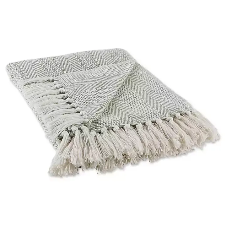 Bring comfort and style to your space with this Artichoke Green Herringbone Fringe Throw. Its modern design and soft texture make it the perfect throw for any room.