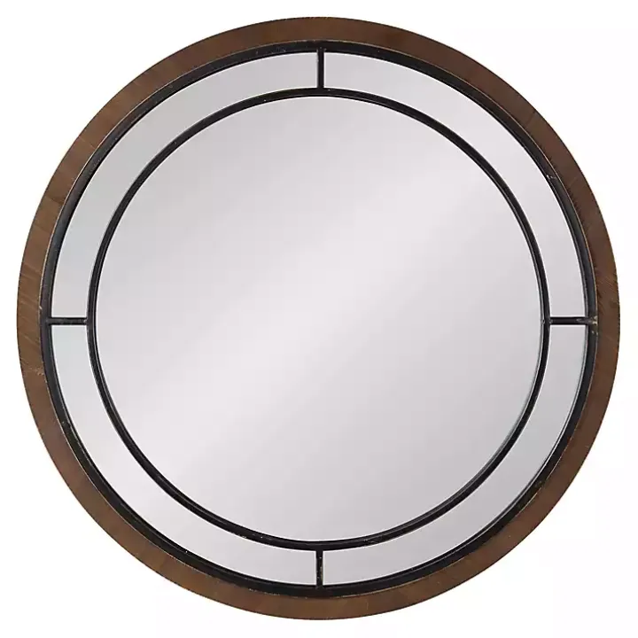 The Audubon Brown Wood Round Wall Mirror will perfectly reflect your classic farmhouse style. The iron overlay and hand-distressed finish lend rustic appeal to its traditional design.