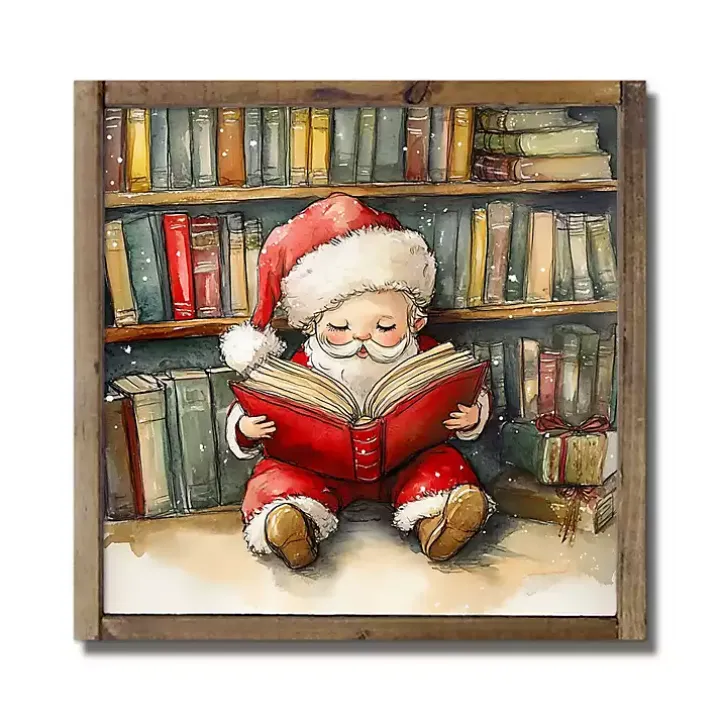 Admire a nostalgic scene of little St. Nick reading a story with this Baby Santa Library Framed Art Print. It’s sure to spread the warm and cozy feeling of Christmas throughout your home.