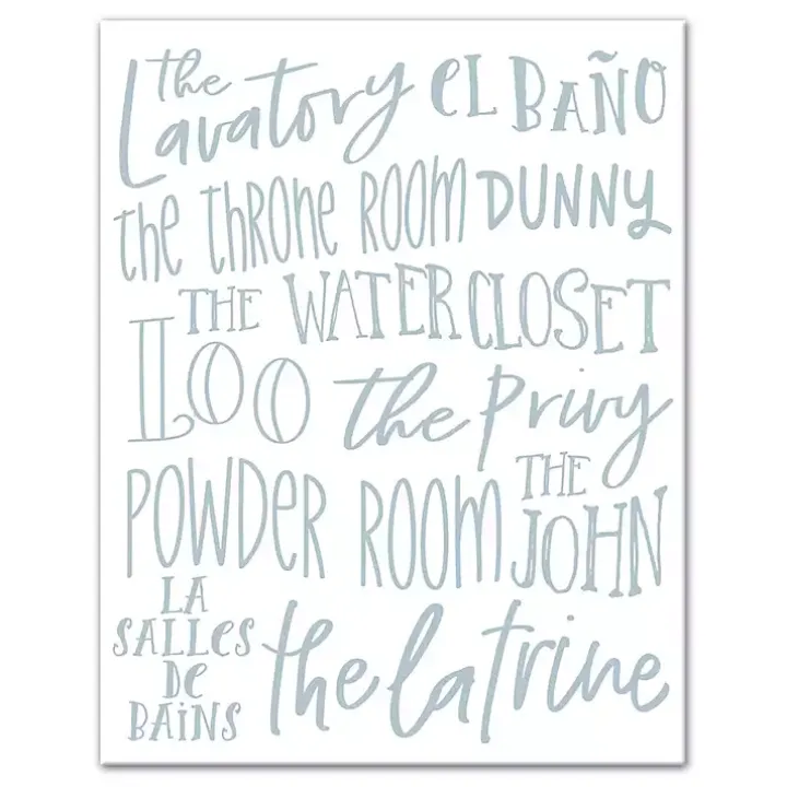 Everyone’s got a name for it – put them all on display! Our Bathroom Names Canvas Art Print features a collage of toilet aliases to satisfy your potty humor.