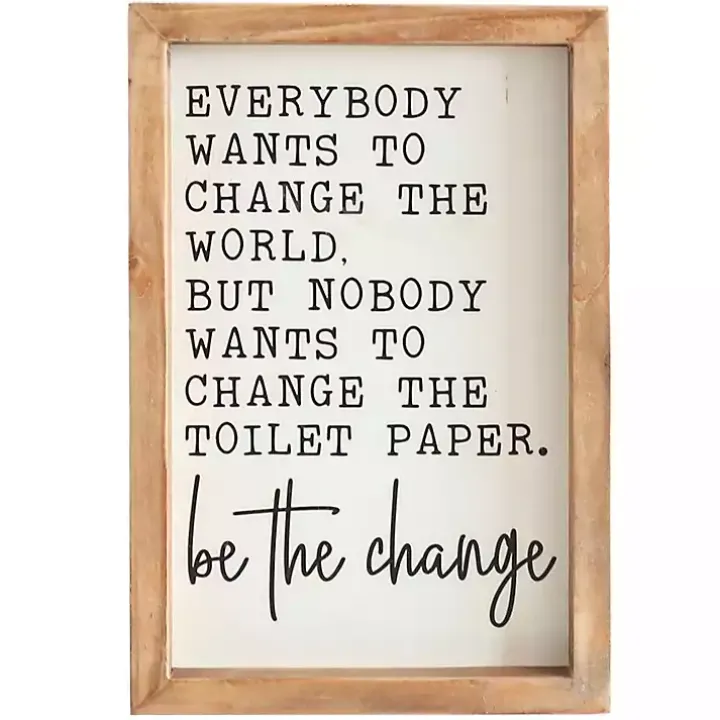 Our Be The Change Framed Wall Sign will add both humor and inspiration to your bathroom. Your guests will definitely get a laugh from this sign on their next visit.