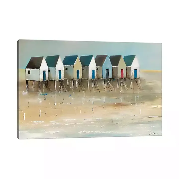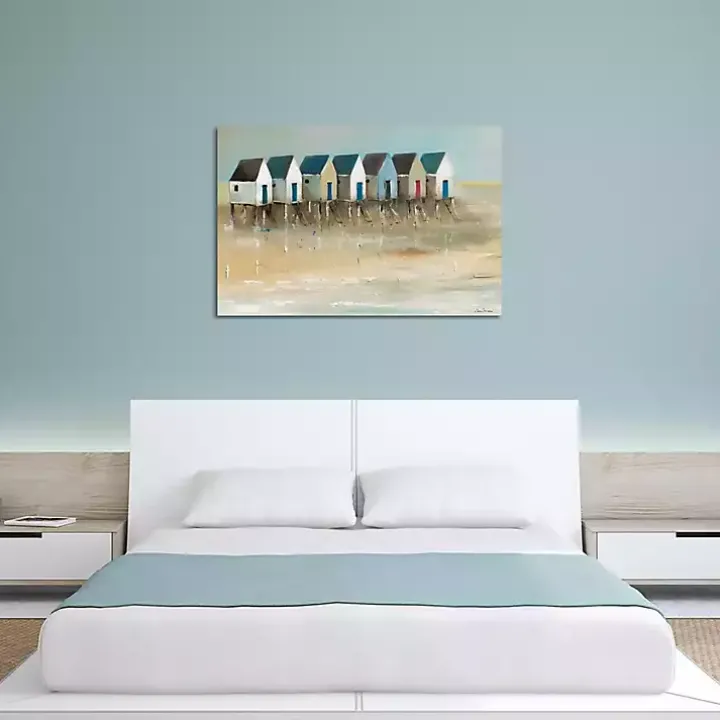 Bring a coastal theme to your living space with our Beach Cabins Canvas Art Print. This lovely canvas painting is perfect for making your home feel like a beach house!