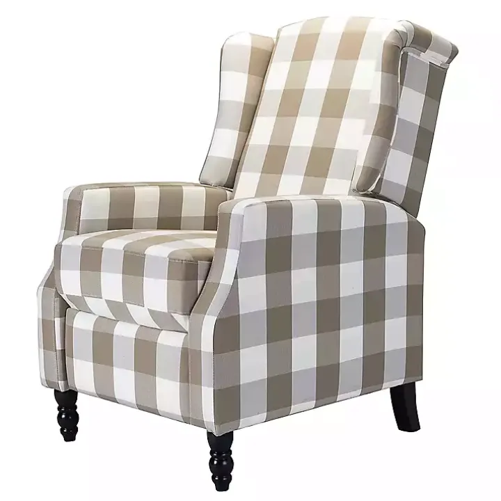 Introduce both comfort and style to your home with this Beige Windowpane Plaid Recliner. Its modern take on a classic look will bring a breath of fresh air to any space! Plus, with its easy reclining design, it might just become your new favorite seat!