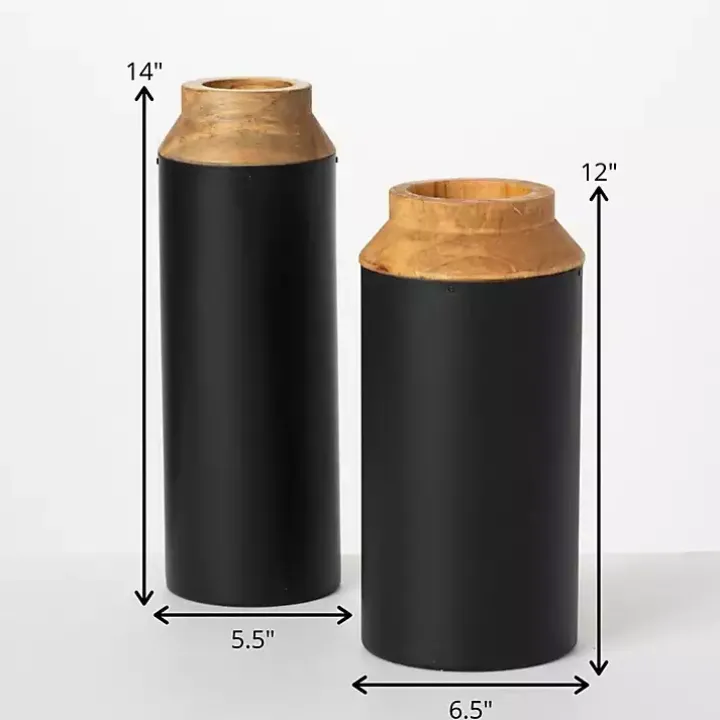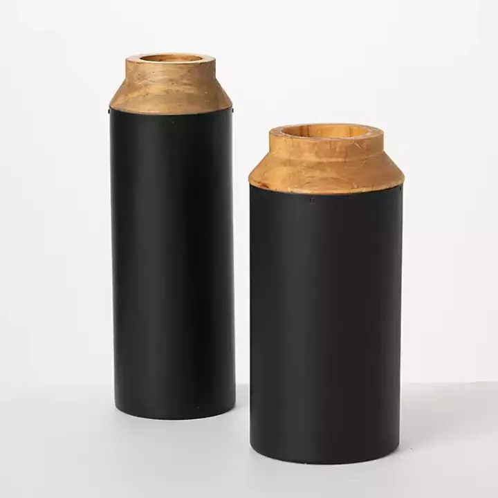 Give any space a sleek, modern touch with these Black and Brown Wood Vases. They’ll look lovely on their own or filled with faux flowers or greenery!