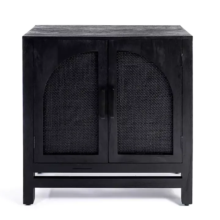 Create some stylish extra storage space with this Black Arch Cane and Wood Cabinet. With its cane detailing and sleek, black finish, it will make a chic and useful addition to any room in your home!