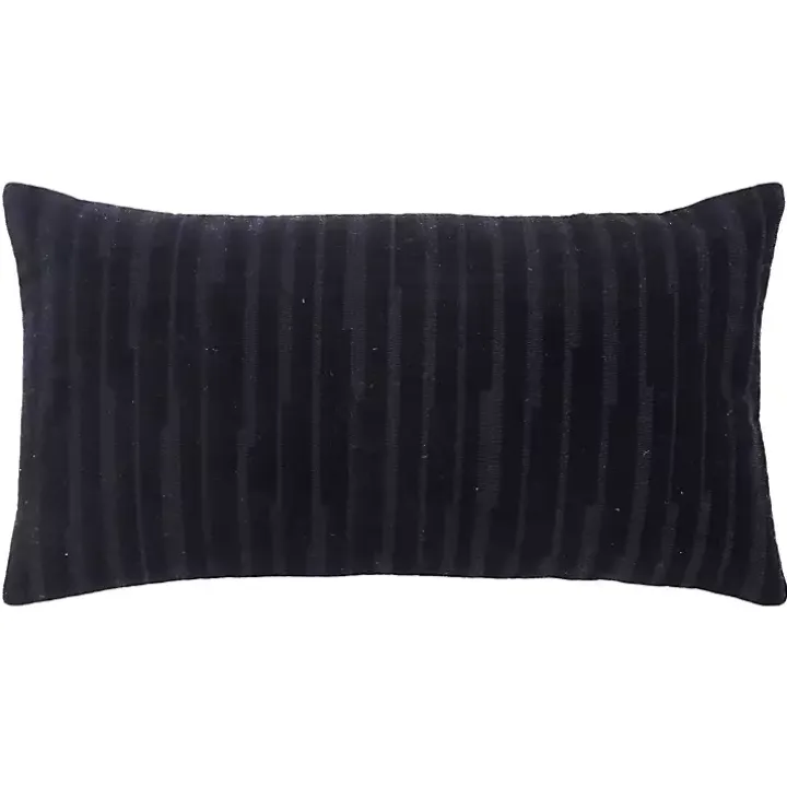 Add luxurious texture and pattern to your home with our Black Asymmetrical Stripe Lumbar Pillow! The asymmetrical velvet stripes make this pillow the perfect accent piece to elevate your living room or bedroom.