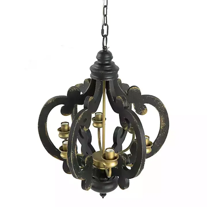 Add a classy touch to your home with this Black Distressed Gold Chandelier. Its rustic, yet chic design and distressed finish makes it perfect for farmhouse decor!