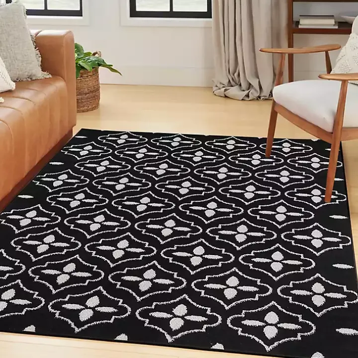 Add our Black & Ivory Quatrefoil Indoor/Outdoor Rug for a simple yet stylish upgrade to any room in your home! This sophisticated rug is perfect for your living room, backyard patio, or anywhere in between!