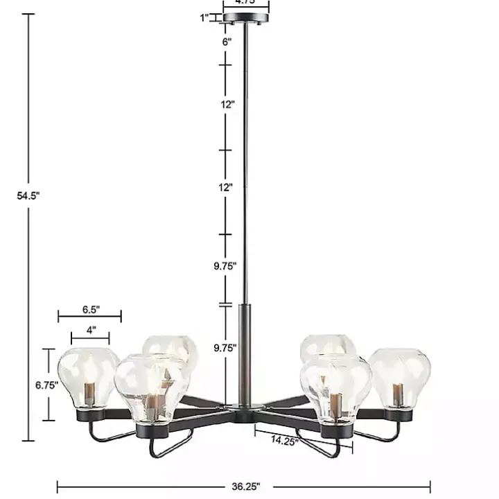 - Chandelier measures 54.5H x 36.25 in. in diameter