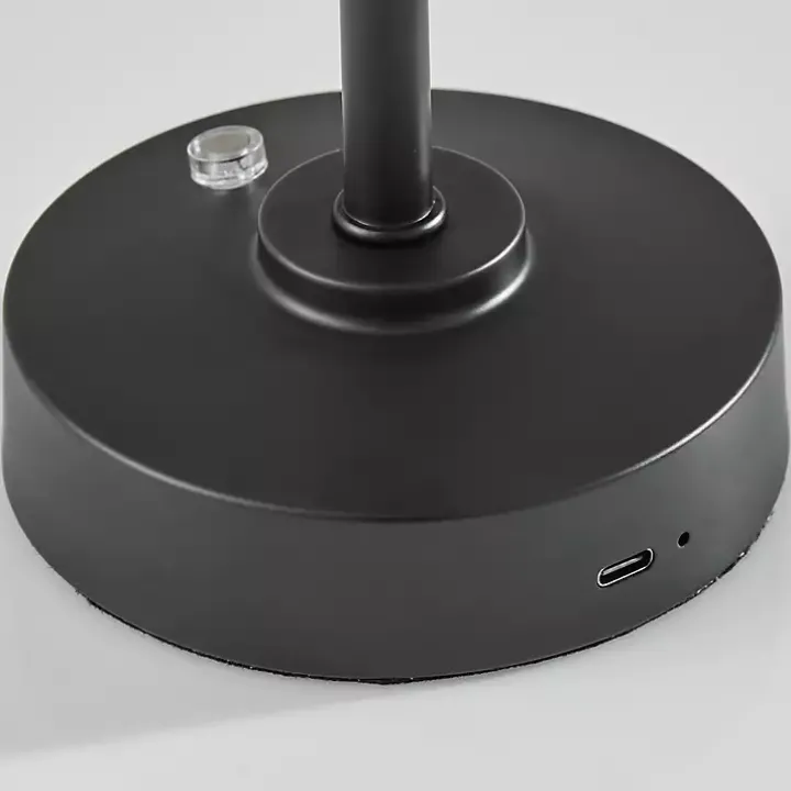 Give your space a modern touch wherever you go with this Black Metal Cone Shade Cordless Table Lamp! Featuring a rechargeable light and protection against outdoor elements, this stylish lamp can illuminate your office, bedroom, porch, or patio!