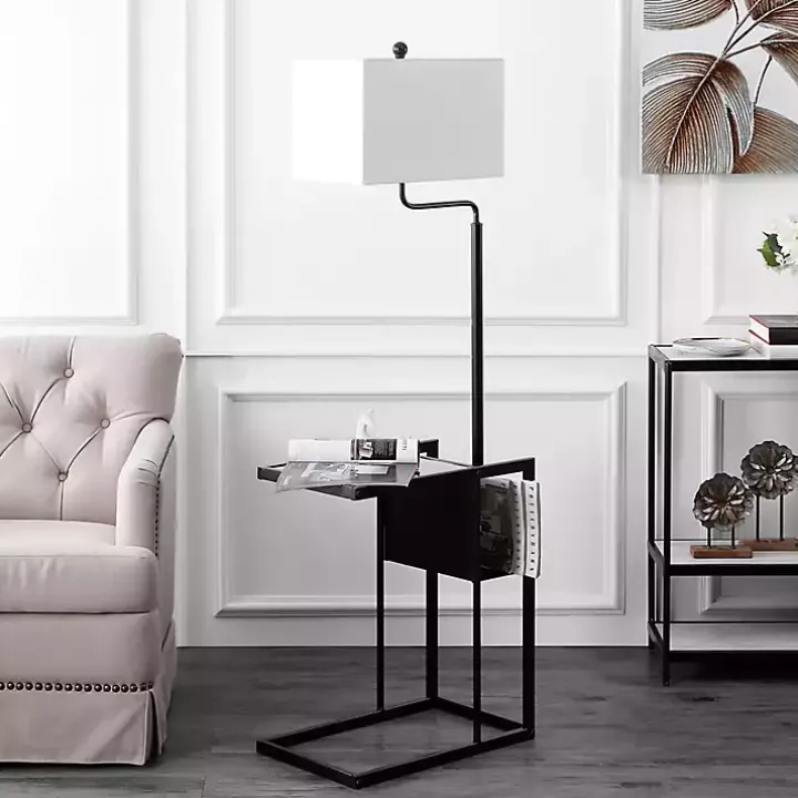Stylish and functional, this Black Metal Floor Lamp with Glass Tabletop is perfect for small spaces! Not only does this provide light, it provides storage so you can maximize your space with a sophisticated look.