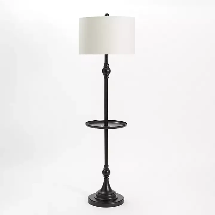 Illuminate your space with our Black Metal Floor Lamp with Round Tray! This floor lamp features a simple yet elegant design with a functional tray, perfect for catching your small items!