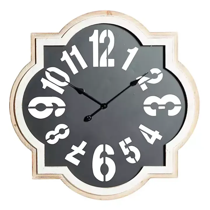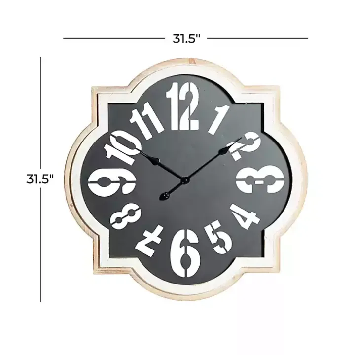 Create a bold focal point on any wall with this Black Metal Quatrefoil Farmhouse Wall Clock. Made with contrasting finishes and cutout numerals, it’s sure to make an eye-catching statement!