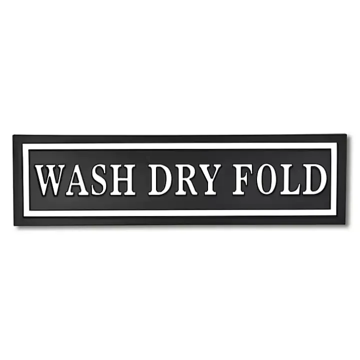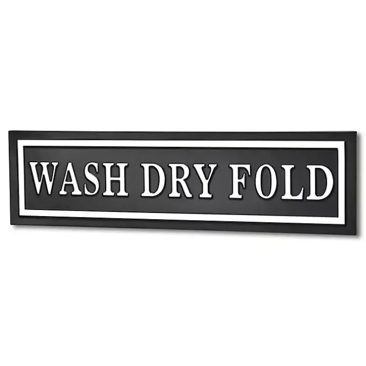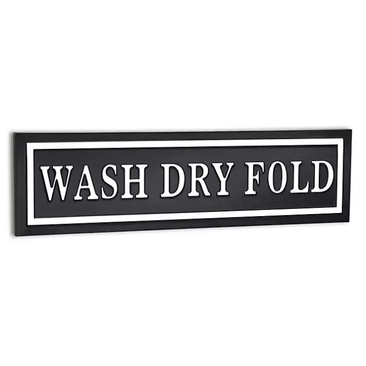 The Black Metal Wash Dry Fold Wall Sign will remind you to take everyday chores one step at a time. Its glossy finish and two tone design will bring modern flair to your laundry room.