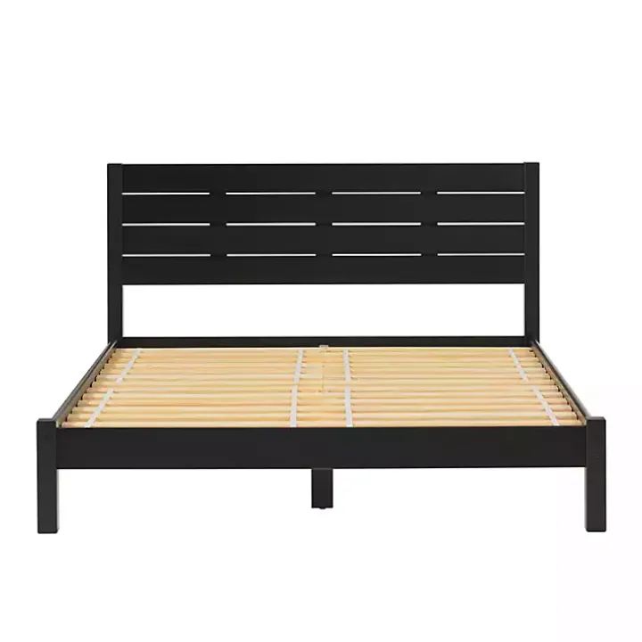 The Black Pine Wood Slatted Headboard Queen Bed brings simplicity to your slumber. The understated wood plank headboard matches a variety of styles, from boho to rustic. Sturdy and sustainably sourced, the natural solid pine wood build brings your bedroom down to earth.