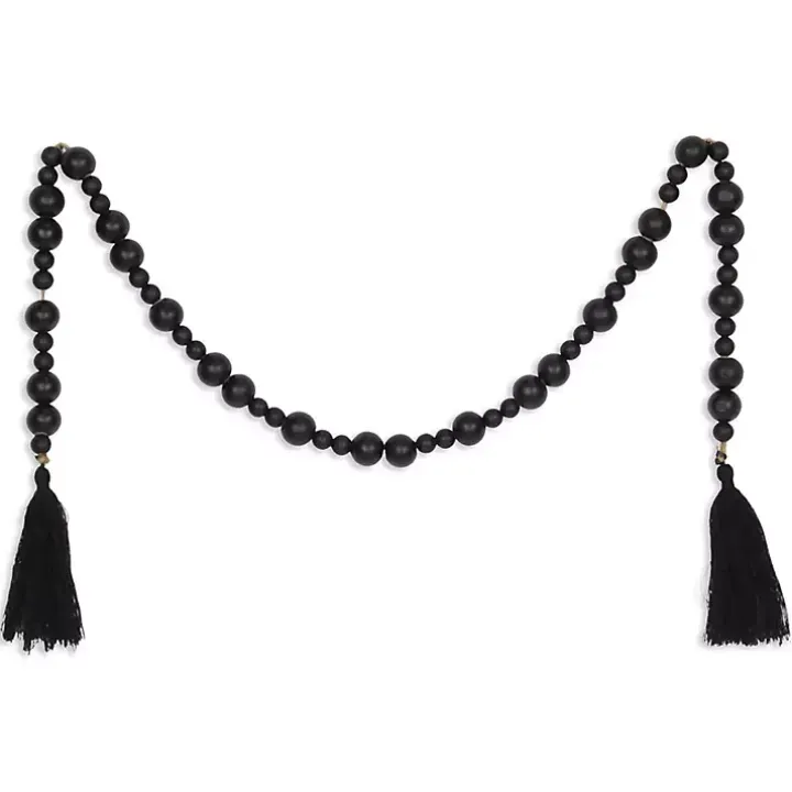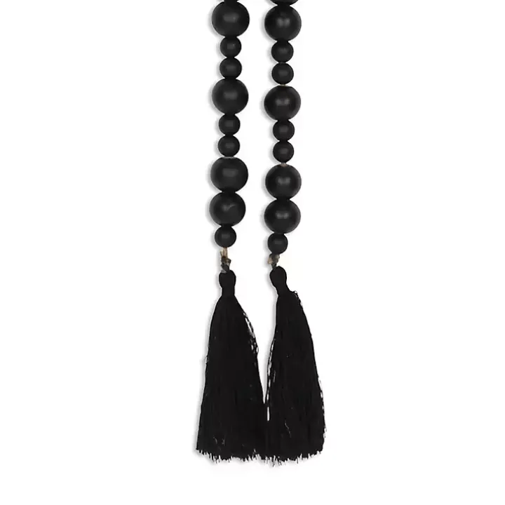 Bring an eye-catching accent to your space with this Black Round Wood Bead Tassel Garland! With its all black finish and round beads, this garland will add a pop of style to any surface!