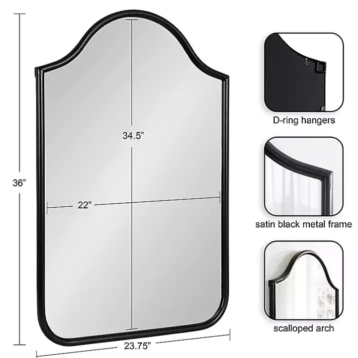 Enhance the traditional style of your home with this beautiful Black Scalloped Arch Fellows Wall Mirror. This dramatic and charming wall mirror features a stunning arched shape with soft corners and an attractive finish to enhance its look.