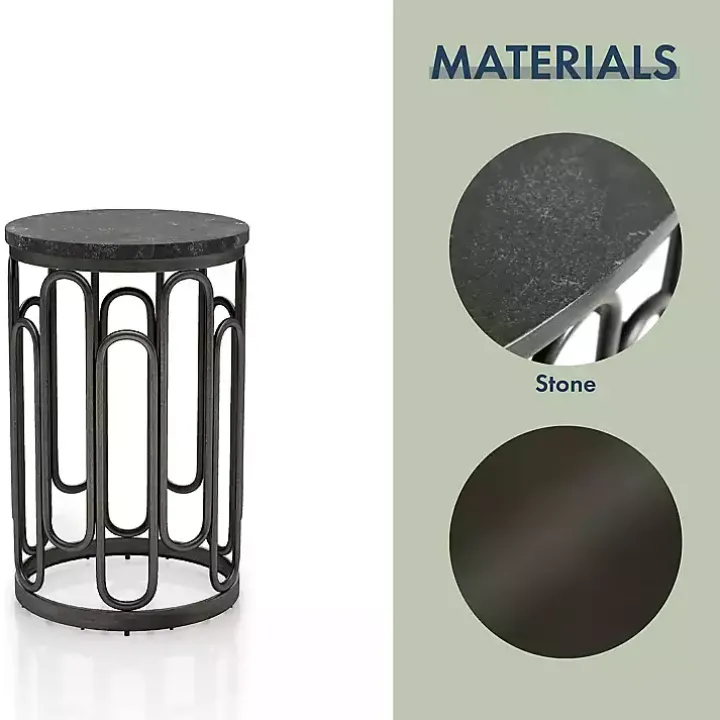 The Black Stone and Metal Geometric Accent Table features a striking base that mimics the look of paperclips. This bold statement piece will look perfect in a modern-industrial setting.