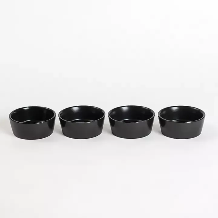 The set of Black Stoneware Appetizer Bowls will make a stylish addition to your table settings. Serve delicious snacks and toppings with this modern, sophisticated dinnerware.