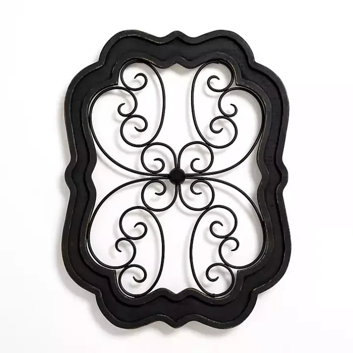 Add variety to your wall decor with this Black Wood and Metal Decorative Wall Plaque. Its beautiful, scrolled design will put a timeless touch on your space!