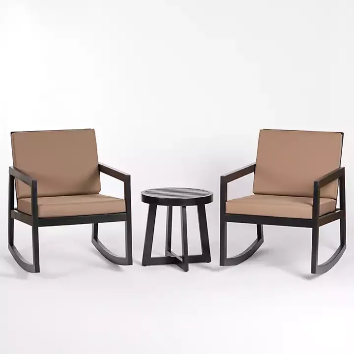This Black Wood Cushioned Rocker 3-pc. Conversation Set will turn your outdoor space into a great spot for enjoying the weather and the company of a friend! The rocking design of the chair are perfect for relaxing!