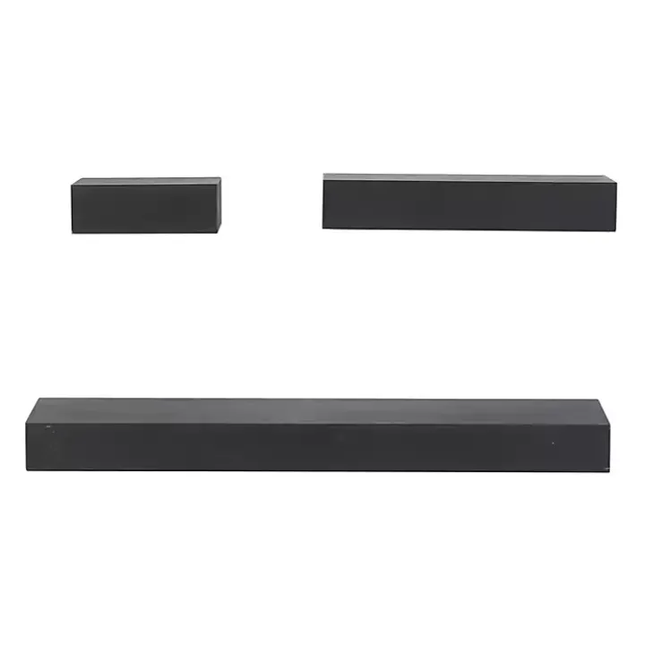 Inspired by sleek elegance and clean lines, the minimalistic design of these Black Wood Floating Shelves offers effortless luxury with monochromatic tones and bold, angular structures!