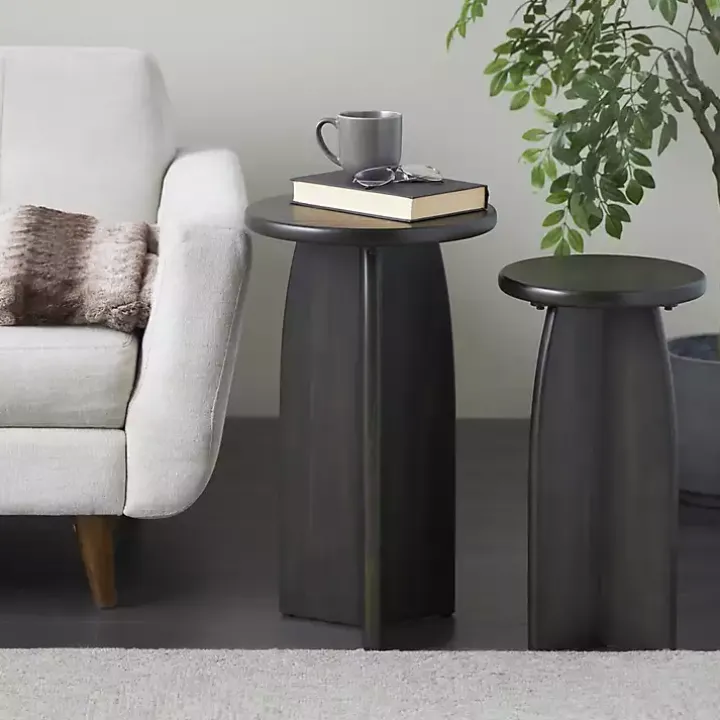 Add dimension to your space with these Black Wood Modern Accent Tables! These unique accent tables are perfect for small spaces. You’ll love the look of the black finish!