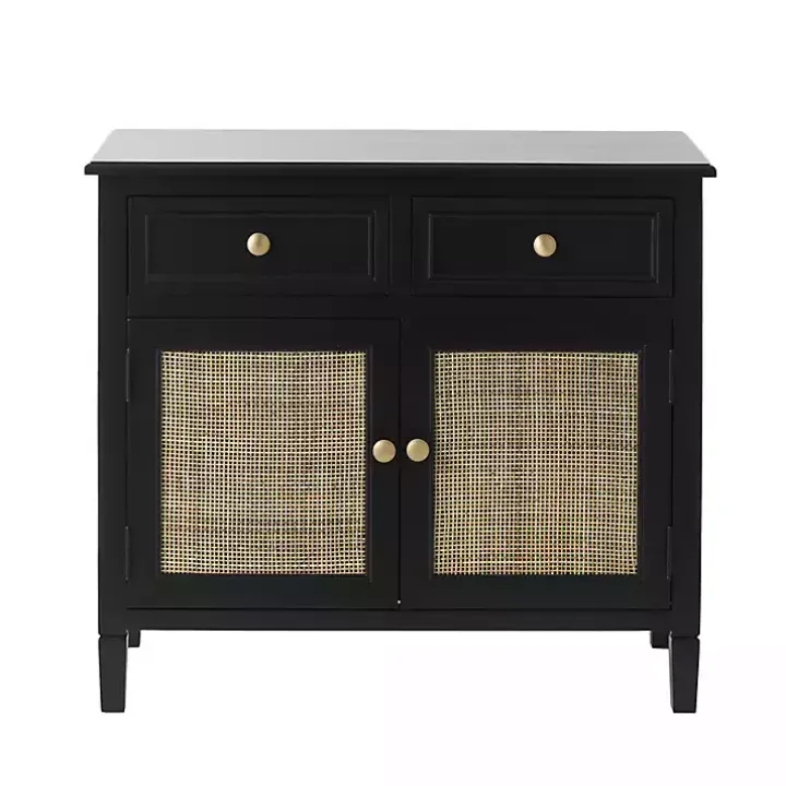 This Black Wood & Natural Rattan 2-Door Cabinet combines modern and bohemian designs for a stylish look to your home! This cabinet is perfect for staying organized with an elevated look.