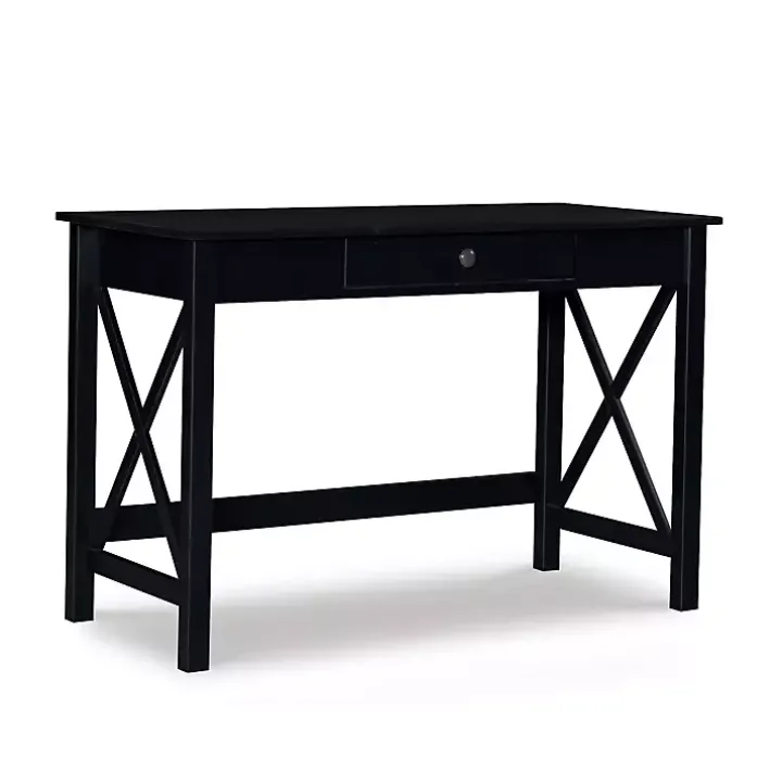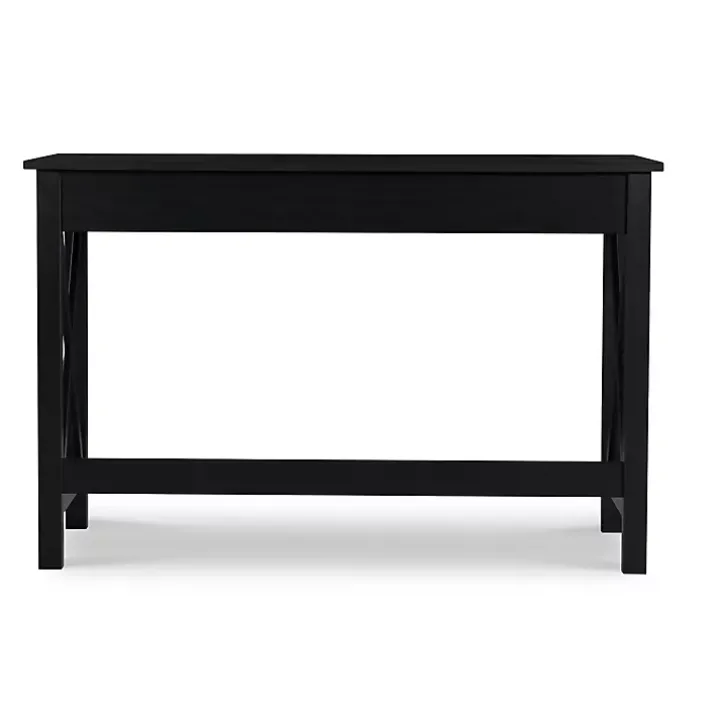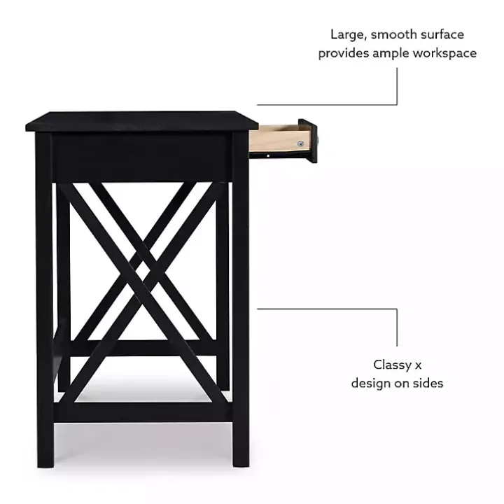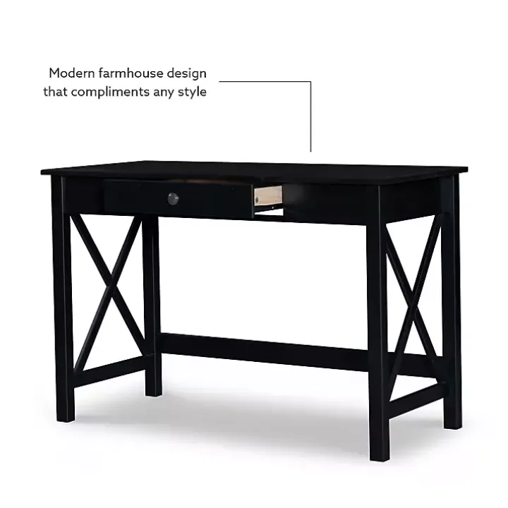 Create a modern farmhouse office setup using this Black Wood X-Sides Desk. Its neutral finish and traditional design brings a timeless element into your home.