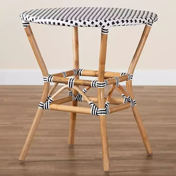 Create a charming breakfast nook in your home with this Black Woven Rattan French Bistro Dining Table. Its contrasting colors and unique frame make an eye-catching statement!
