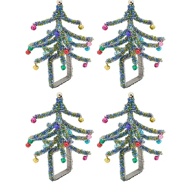 Give your festive tablescape a playful finishing touch with this set of Blue Beaded Christmas Tree Napkin Rings! You’ll love how the colorful bells shine against your neutral linens.