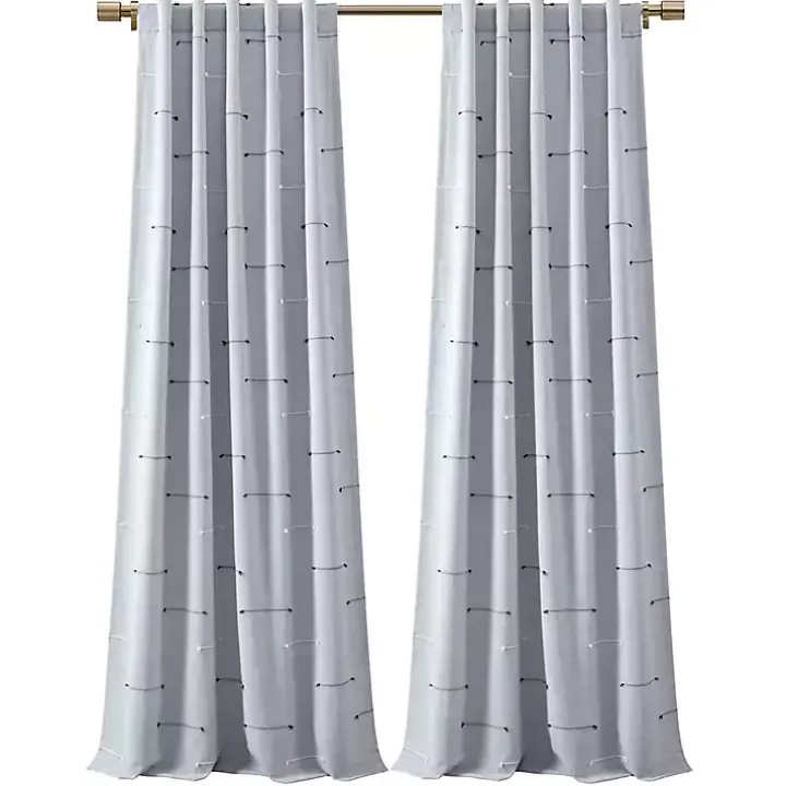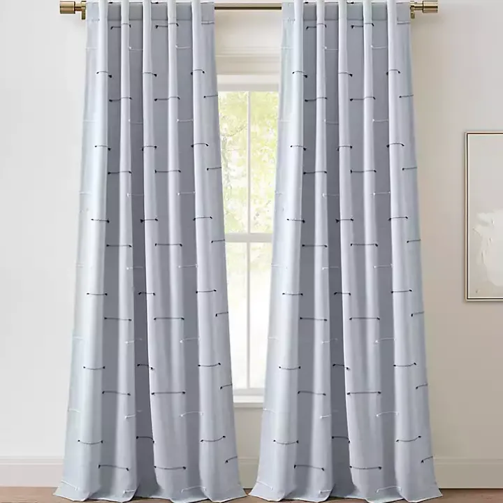 The Blue Clipped Stripe Curtain Panel Set features subtle yet chic texture that combines modern flair with traditional charm. The cool blue hues and timeless design will blend with a variety of home aesthetics.