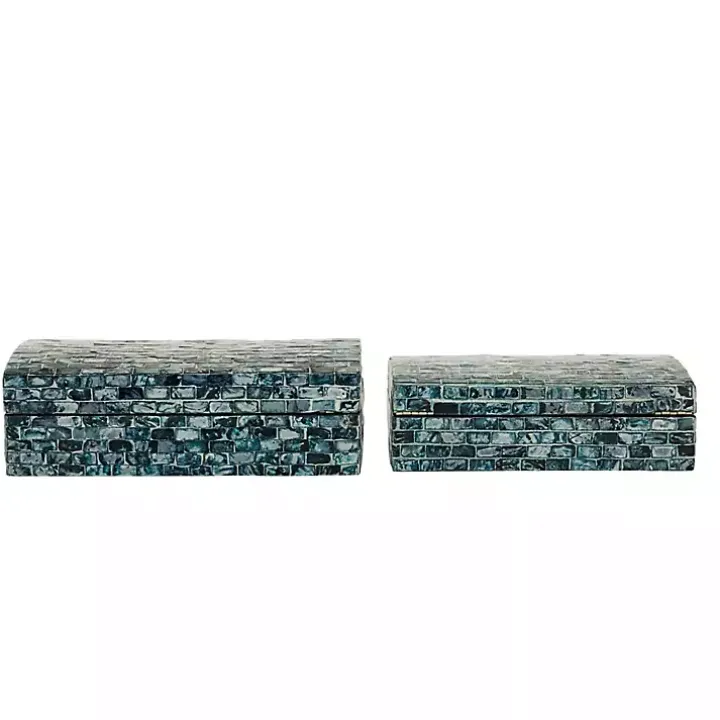 Our Blue Mother of Pearl Coastal Boxes will bring a coastal flair to your organizational needs. You’ll love how their brick pattern looks in any space!