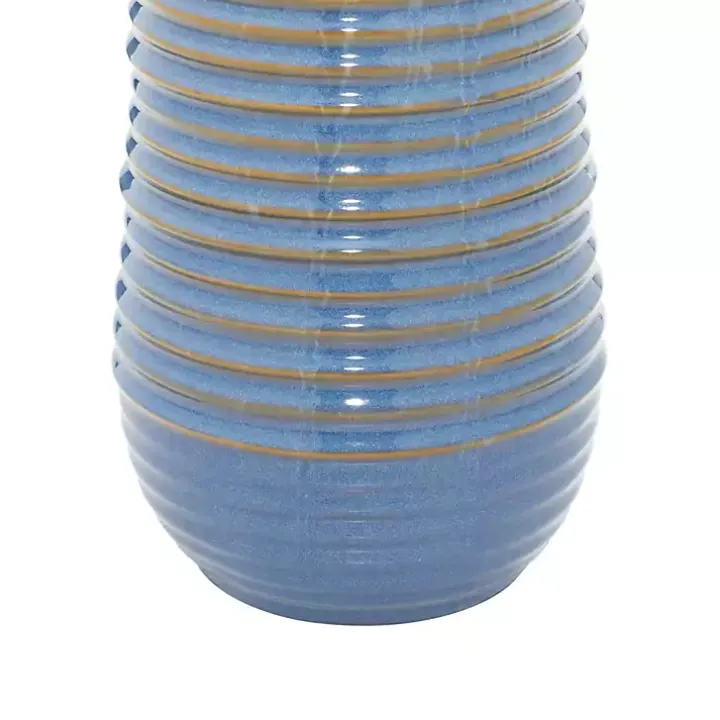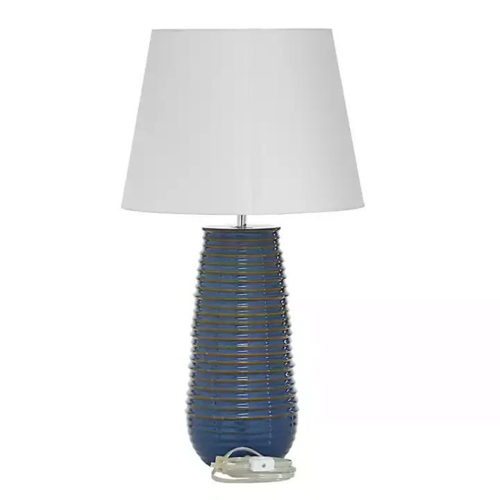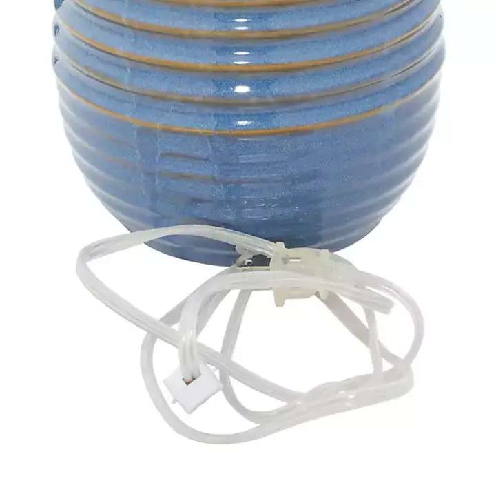 Light up any corner of your home with this Blue Ribbed Stoneware Table Lamp. With an authentic pottery look, it will add a beautiful rustic charm to your space!