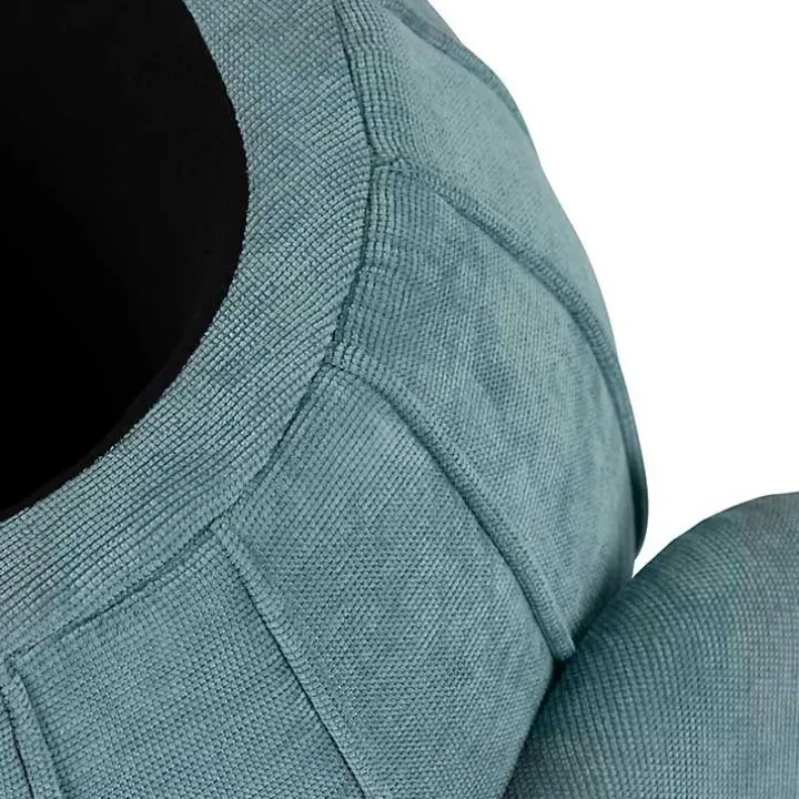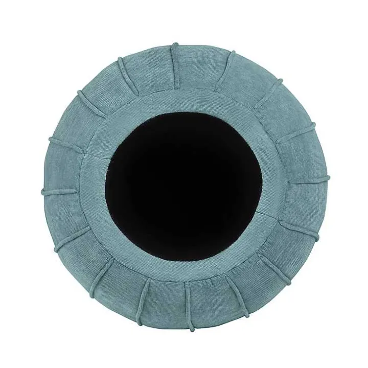 Add a unique look to your space with our Blue Rounded Oval Ottoman. This piece of furniture stands out with its luxurious feel and piping accents.