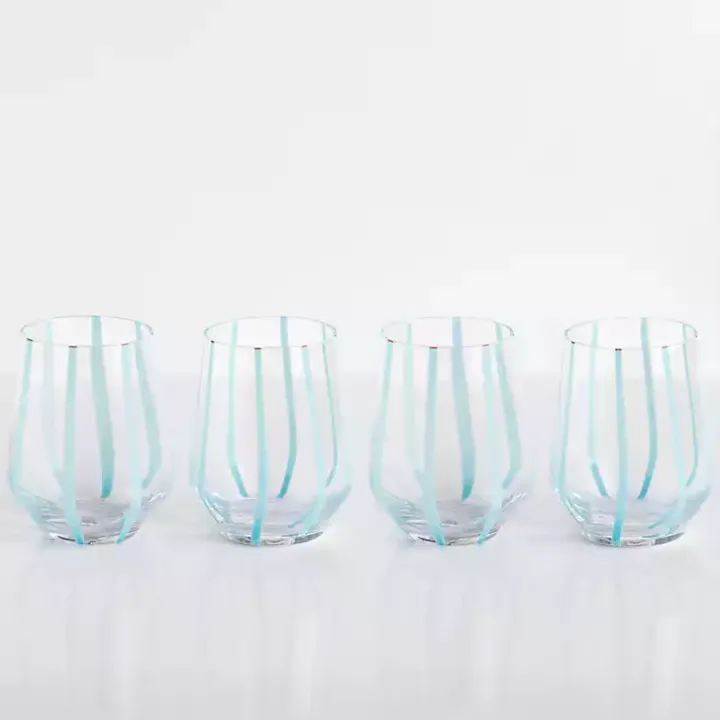 Whether you’re hosting a special brunch or a girls night in, sip on your drink of choice the set Blue Striped Stemless Wine Glasses! They’re perfect for adding a pop of color and casual charm to your glassware.