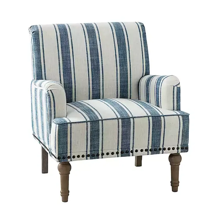 Bring some farmhouse flair to your space with our beautiful Blue White Stripe Upholstered Accent Chair. You’ll love the striped design and rustic legs.