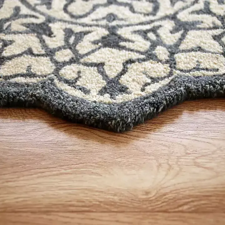 Add a quaint element to your floor space with this Blue Wool Mosaic Medallion Round Area Rug! You’ll love the unique floral shape and classy blue hues.