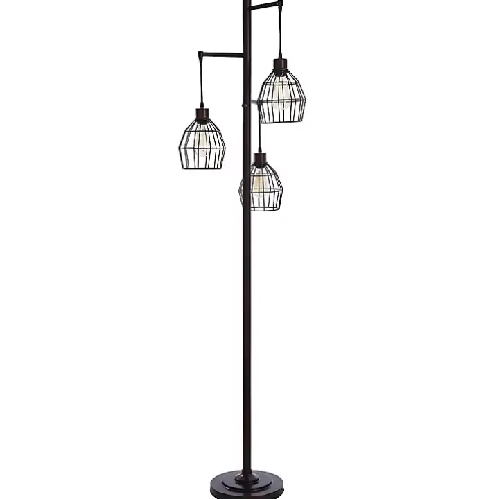 Our Bronze Metal 3-Tier Floor Lamp features trio of caged, pendant-styled lights for your industrial home décor. Pair this tiered lamp with amber lights for a warm glow!